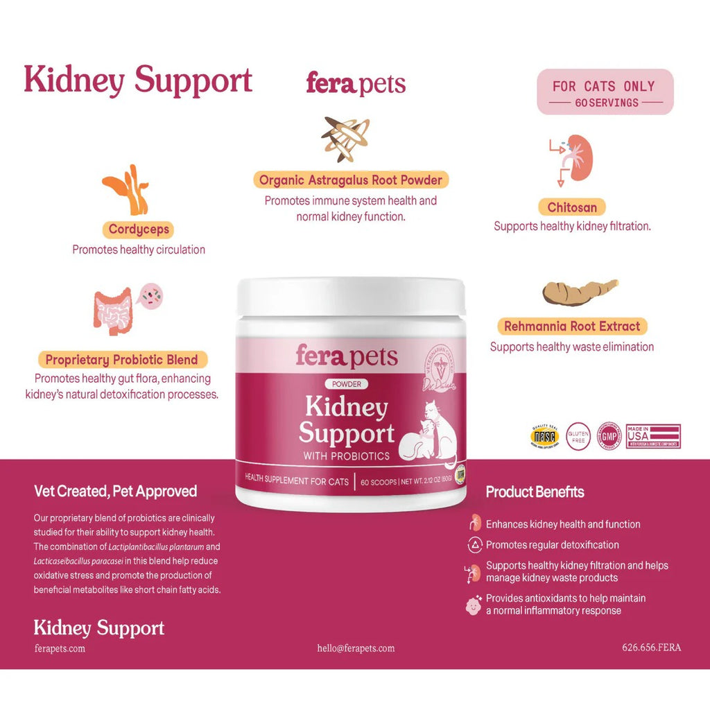 Kidney Support Probiotics Powder Health Supplement For Cats - 60gr