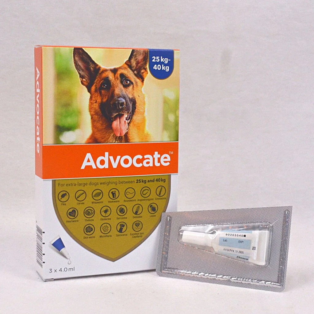 Elanco Advocate for Dogs 25-40 kg is an effective topical parasite control solution for dogs weighing between 25 and 40 kg. This product is designed to eradicate and prevent external and internal parasite infestations, including fleas, roundworms, hookworms, heartworms, and lungworms. With Elanco Advocate, you can provide comprehensive protection for your dog's health, protecting them from the risk of parasites that can harm their health.