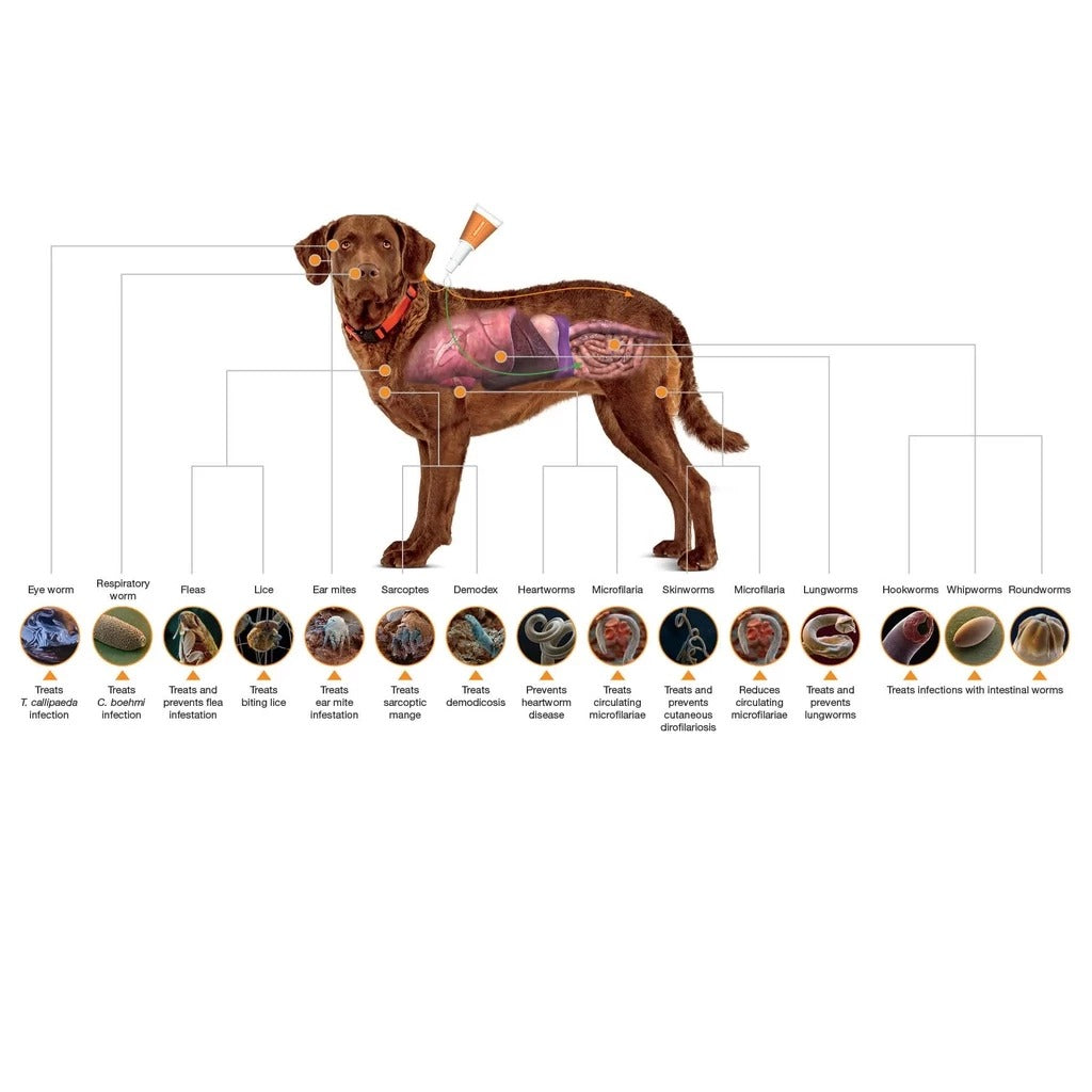 Elanco Advocate for Dogs 10-25 kg is an effective topical parasite control solution for dogs weighing between 10 and 25 kg. This product is designed to eradicate and prevent external and internal parasite infestations, including fleas, roundworms, hookworms, heartworms, and lungworms. With Elanco Advocate, you can provide comprehensive protection for your dog's health, protecting them from the risk of parasites that can harm their health.