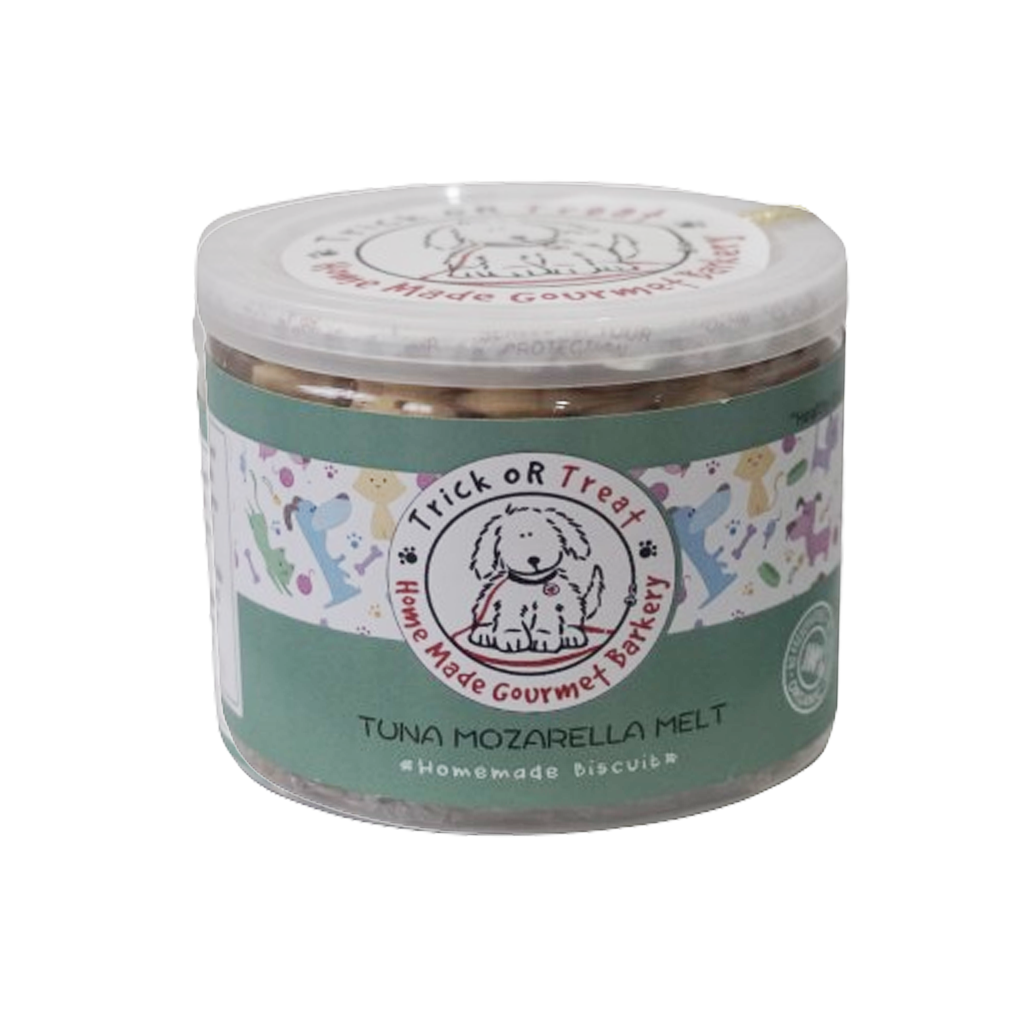 Tuna Mozarella Melt Biscuit Dog Treats is a healthy, freshly baked, home made treats from Trick or Treats Bakery. This delicious dog treats combining fresh and wholesome ingredients with outstanding flavor. Safe and suitable for all dogs, 100% satisfaction guarantee.