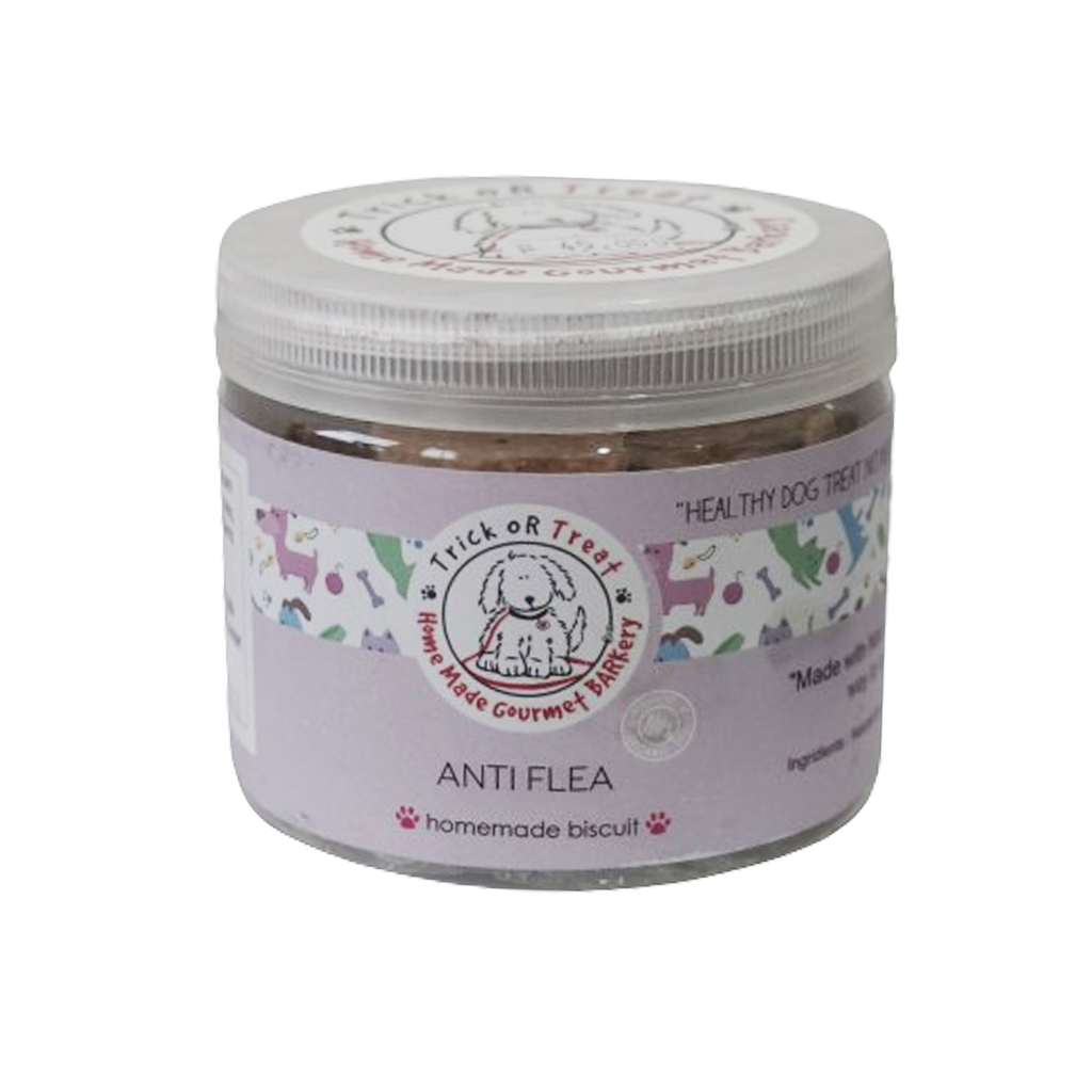 Anti Flea Biscuit Dog Treats is a healthy, freshly baked, home made treats from Trick or Treats Bakery. This delicious dog treats combining fresh and wholesome ingredients with outstanding flavor. Safe and suitable for all dogs, 100% satisfaction guarantee.