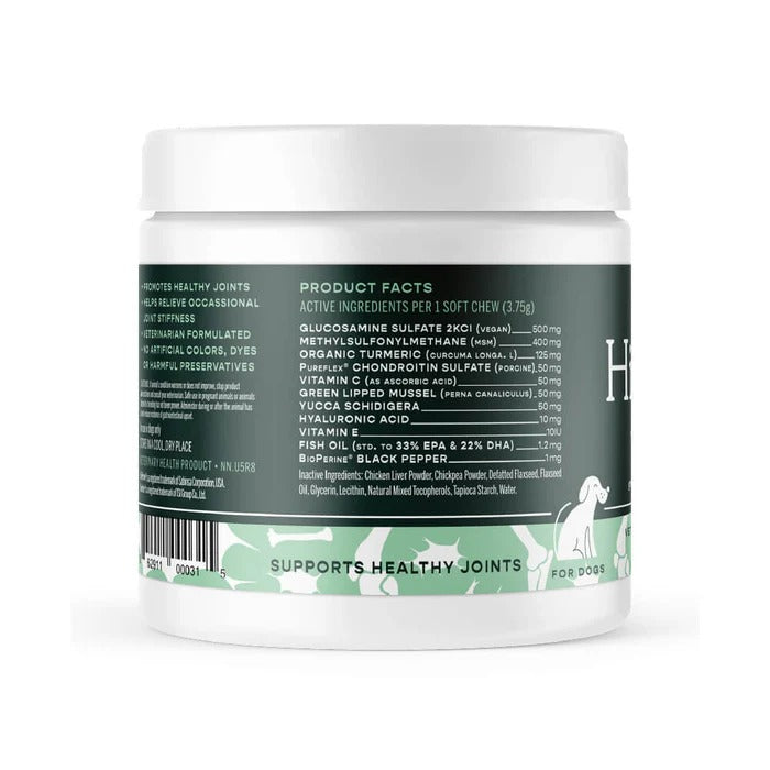 Hip + Joint with organic turmeric for dogs is a high-quality joint supplement that supports bone and joint health and enhances joint function for dogs of all sizes. Features 90 delicious soft chews, your pup will think it's a treat!