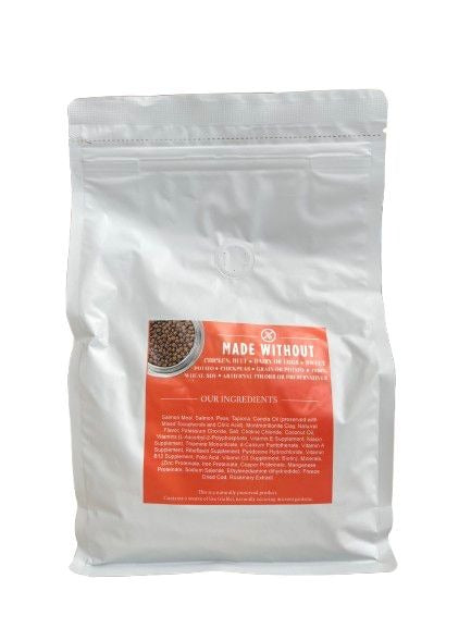 - Made without - grain, potato, corn, wheat, soy, by-product meal, artificial colors or preservatives
