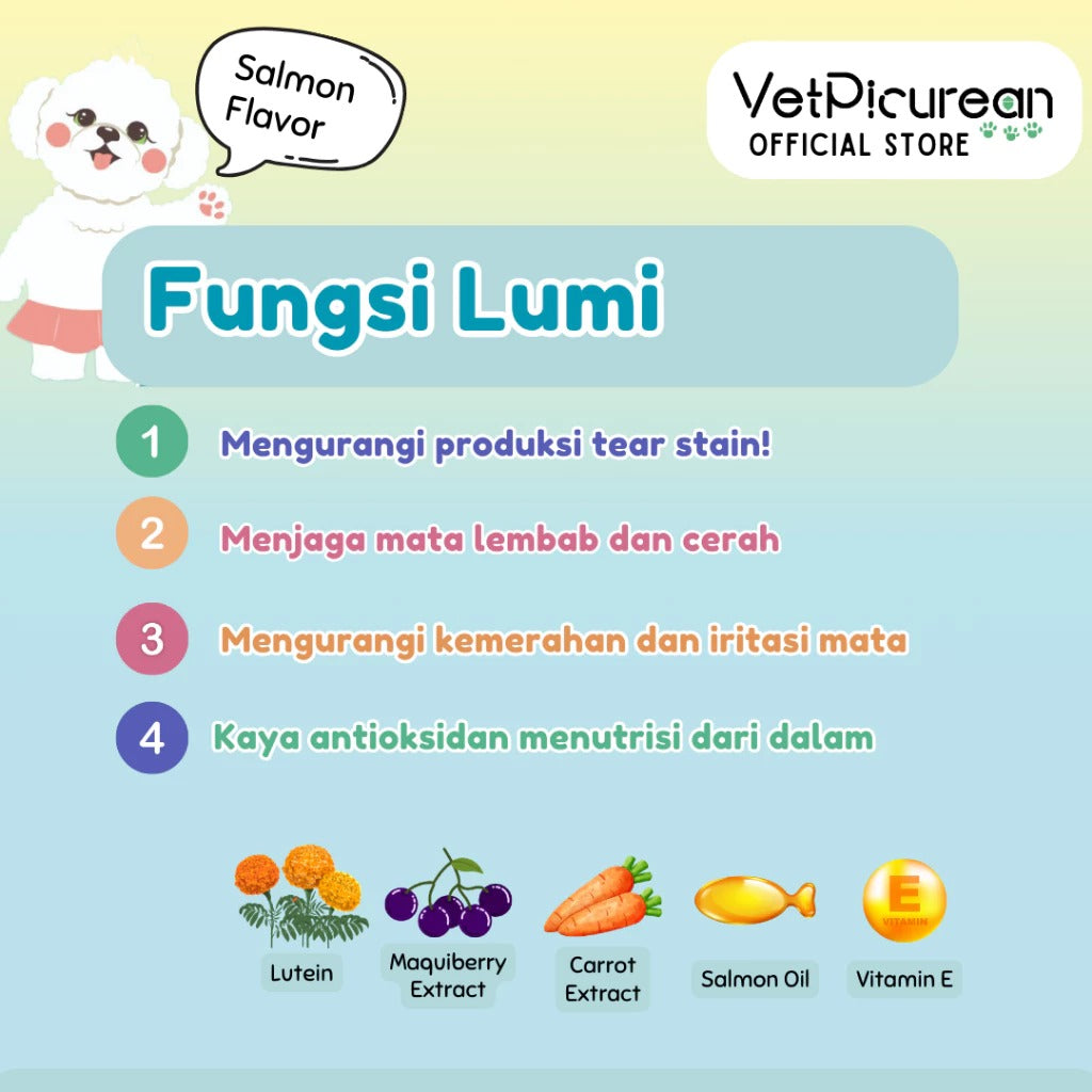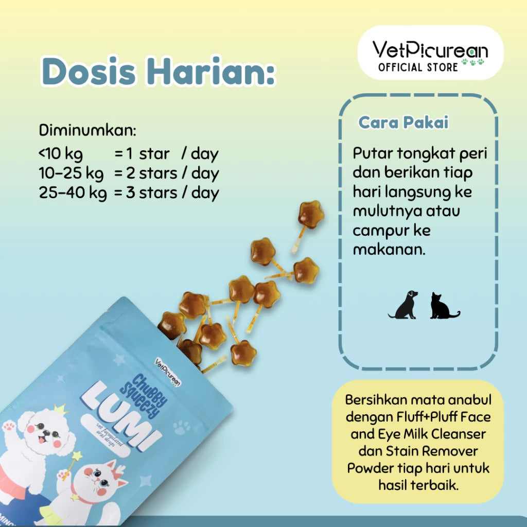 Chubby Squeezy Lumi is a natural, veterinarian-formulated eye vitamin that works from within to reduce excess tear production, keep eyes moist, and brighten the eye area.
